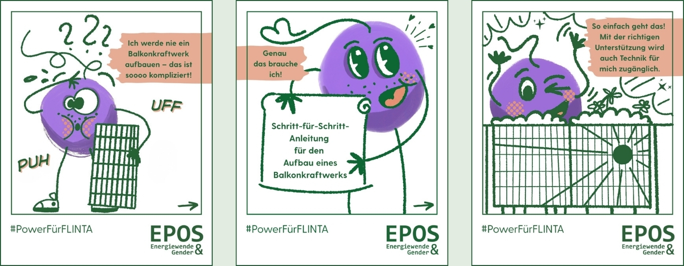 Hier setzt die Kampagne an. Sie zeigt anhand einer Comic-Reihe, wie diese Barrieren wirken – und was hilft, sie zu überwinden. Im Mittelpunkt stehen praktische Wege: ein eigenes Balkonkraftwerk, Beteiligung an Energiegenossenschaften, Workshops, Fördermöglichkeiten und solidarische Strukturen.